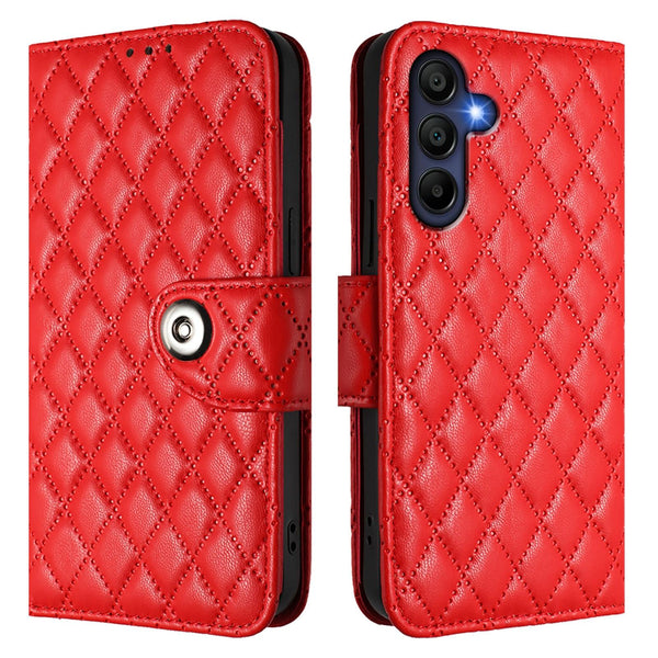 For Samsung Galaxy A26 5G Rhombic Texture Flip Leather Phone Case with Lanyard(Red)