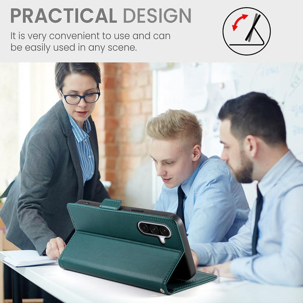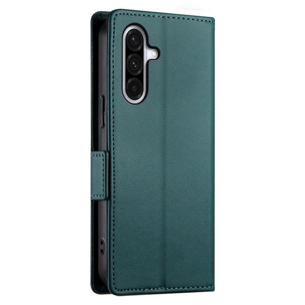 For Samsung Galaxy A26 5G Side Buckle Magnetic Frosted Leather Phone Case(Dark Green)