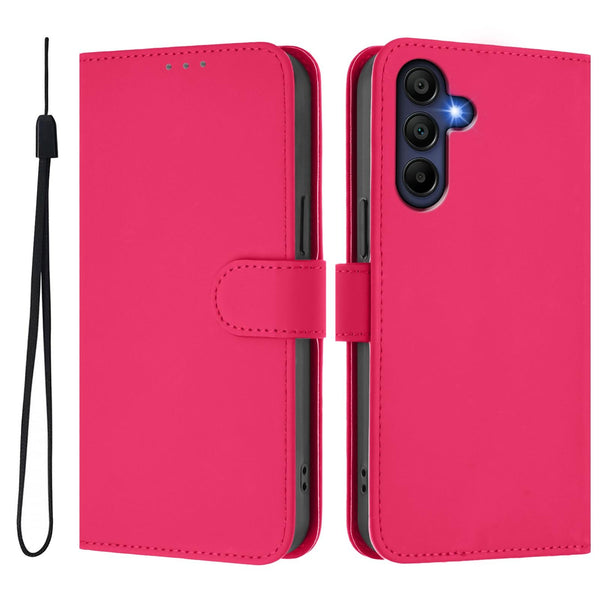 For Samsung Galaxy A26 5G Skin Feel Solid Color Leather Phone Case with Lanyard(Rose Red)