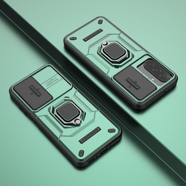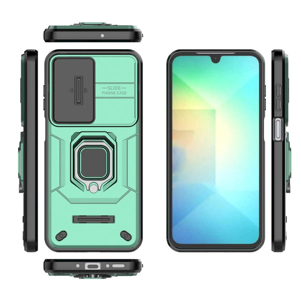For Samsung Galaxy A26 5G Sliding Camshield TPU + PC Shockproof Phone Case with Holder(Green)