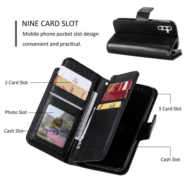 2. 9-card Wallet Function: 9 Card slots and 3 cash compartment to store your credit cards, cash, or small notes for daily needed.