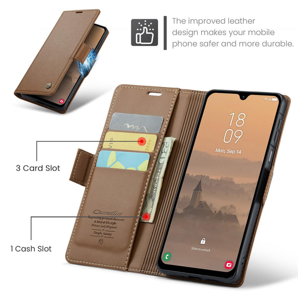 For Samsung Galaxy A26 CaseMe 023 Butterfly Buckle Litchi Texture RFID Anti-theft Leather Phone Case(Brown)
