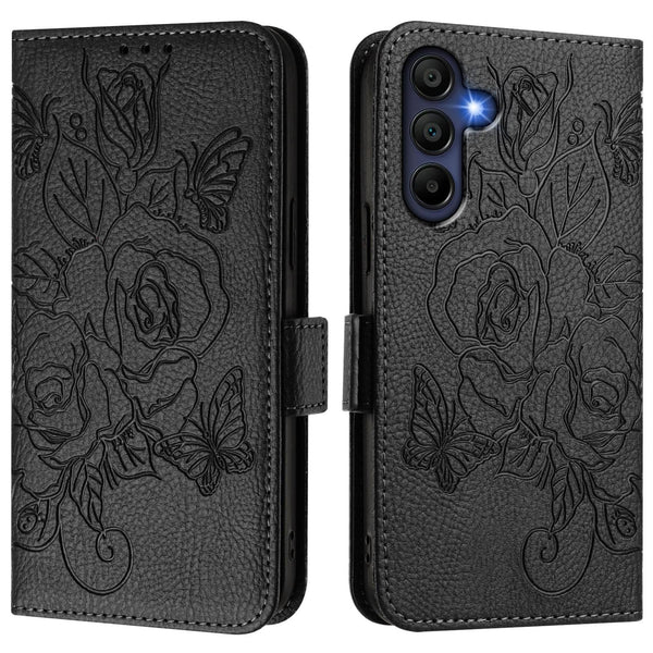 For Samsung Galaxy A26 Embossed Rose RFID Anti-theft Leather Phone Case(Black)