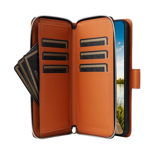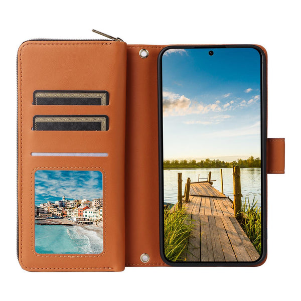 For Samsung Galaxy A26 Nine-card Slots Zipper Wallet Bag Leather Phone Case(Brown)