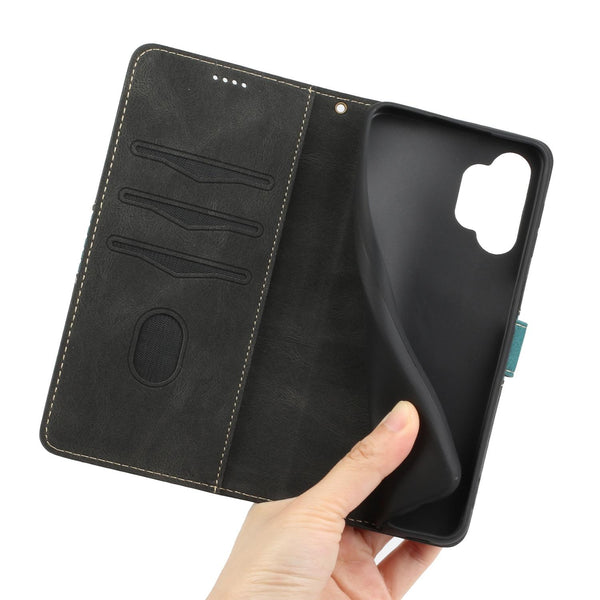 For Samsung Galaxy A32 4G Grid Stitching Leather Phone Case with Lanyard(Black)