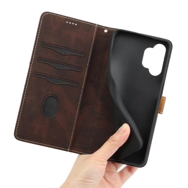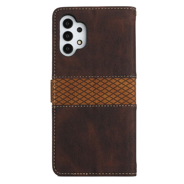 For Samsung Galaxy A32 4G Grid Stitching Leather Phone Case with Lanyard(Brown)