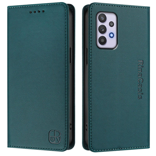 For Samsung Galaxy A32 4G RC01 Dual-Folded Magnetic Suction RFID Leather Phone Case(Dark Green)