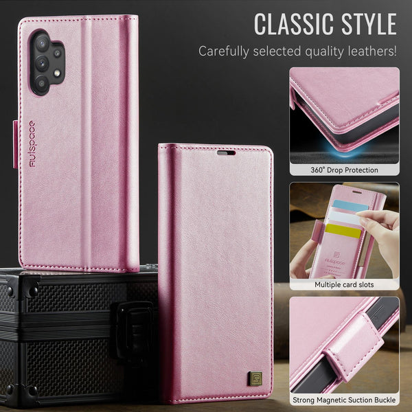 For Samsung Galaxy A32 5G AutSpace A11 Side Buckle MagSafe Magnetic RFID Phone Leather Case(Rose Gold)