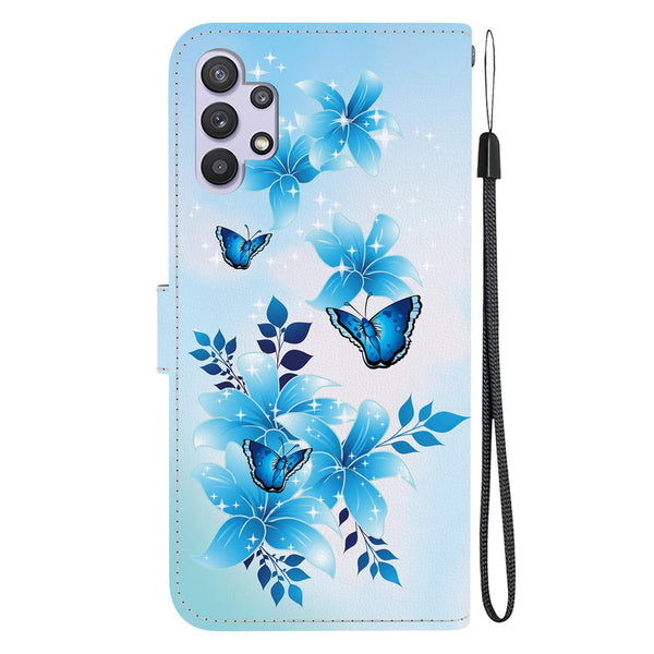 For Samsung Galaxy A32 5G Crystal Texture Colored Drawing Leather Phone Case(Blue Butterflies)