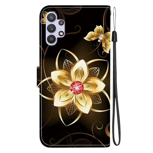 For Samsung Galaxy A32 5G Crystal Texture Colored Drawing Leather Phone Case(Gold Flower)