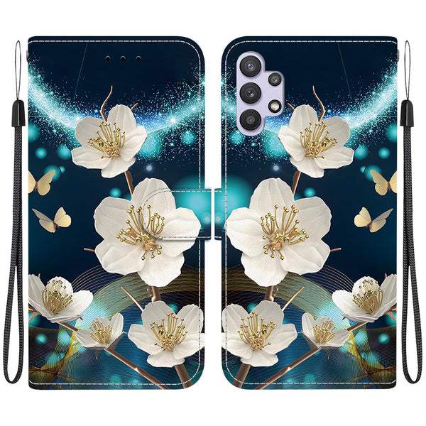 For Samsung Galaxy A32 5G Crystal Texture Colored Drawing Leather Phone Case(Magnolia)