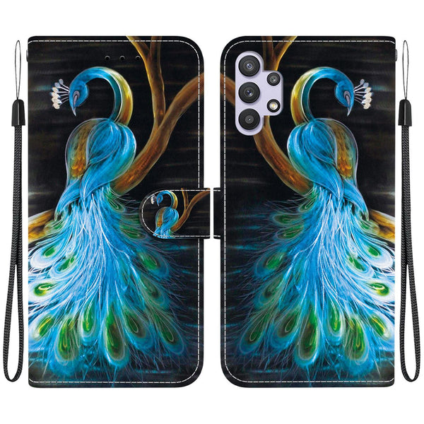 For Samsung Galaxy A32 5G Crystal Texture Colored Drawing Leather Phone Case(Peacock)