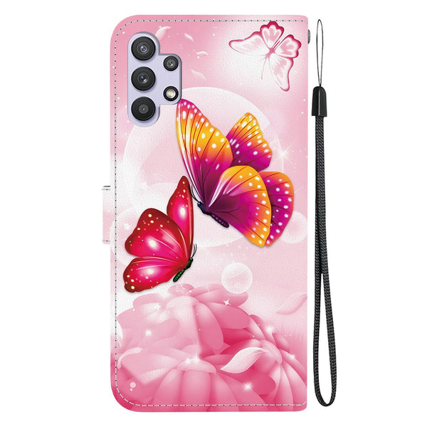 For Samsung Galaxy A32 5G Crystal Texture Colored Drawing Leather Phone Case(Pink Butterflies)