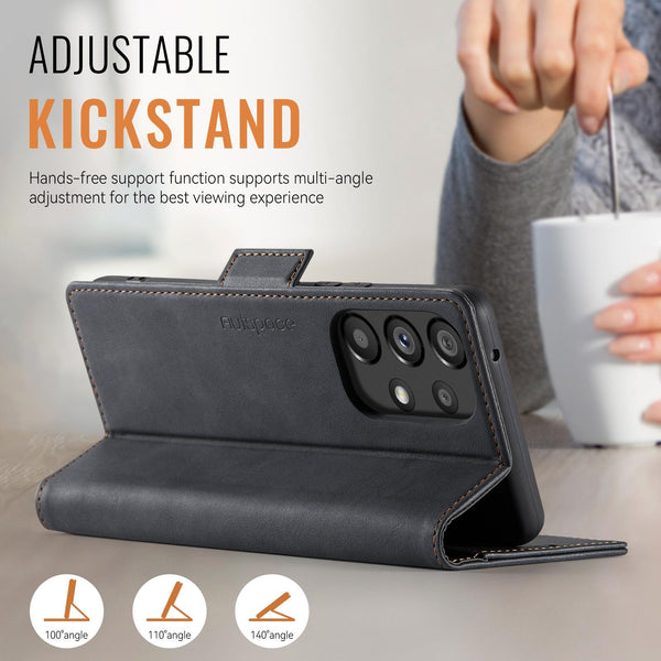 For Samsung Galaxy A33 5G AutSpace A11 Side Buckle MagSafe Magnetic RFID Phone Leather Case(Black)
