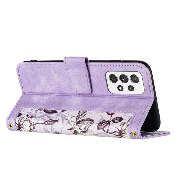 For Samsung Galaxy A33 5G Floral Pattern Leather Phone Case with Lanyard(Light Purple)