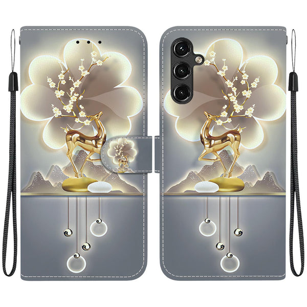 For Samsung Galaxy A34 5G Crystal Texture Colored Drawing Leather Phone Case(Sika Deer)