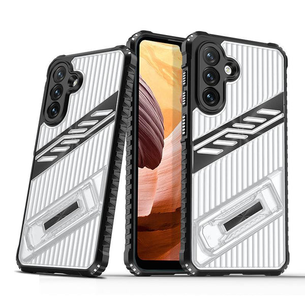 For Samsung Galaxy A34 5G Plating Holder PC Hybrid TPU Phone Case(Transparent Black)