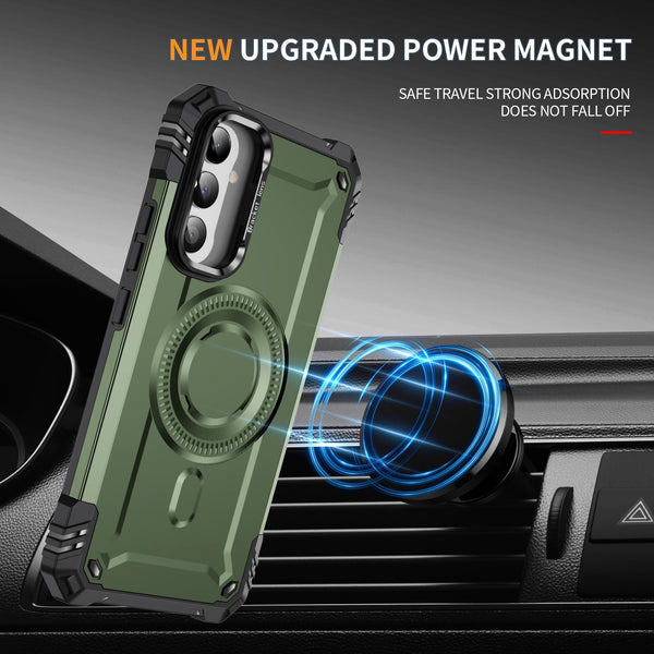 For Samsung Galaxy A34 Lens Holder MagSafe Phone Case(Army Green)