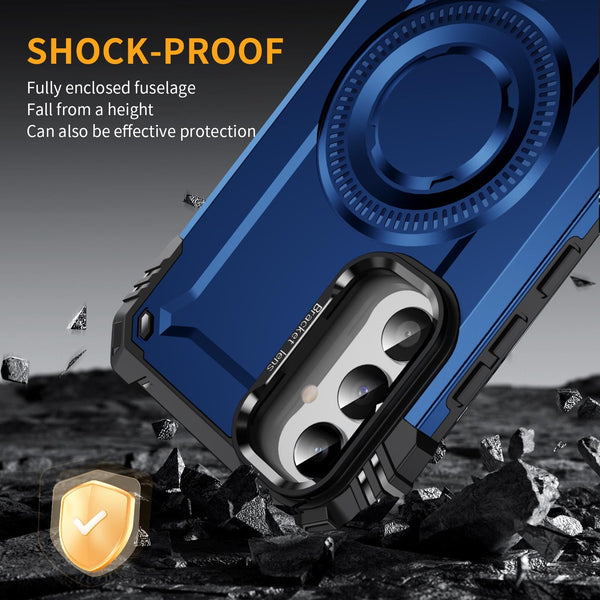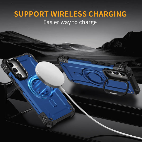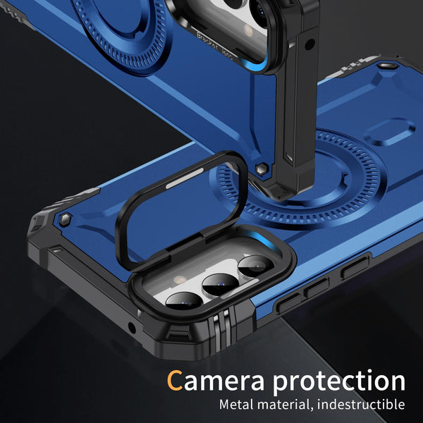 For Samsung Galaxy A34 Lens Holder MagSafe Phone Case(Blue)