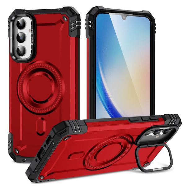 For Samsung Galaxy A34 Lens Holder MagSafe Phone Case(Red)