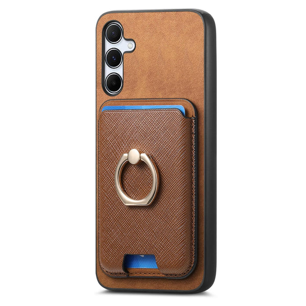 For Samsung Galaxy A35 5G Retro Cross Leather Ring Vertical Insert Card Bag MagSafe Phone Case(Brown)
