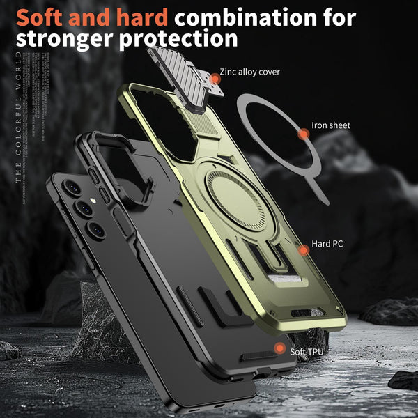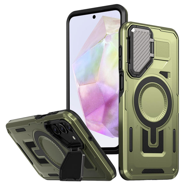 For Samsung Galaxy A35 5G Shield Frame Holder MagSafe Phone Case(Olive Green)