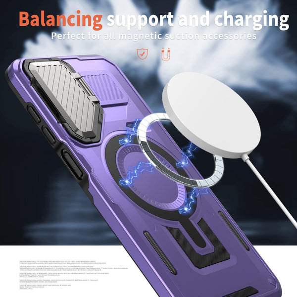 For Samsung Galaxy A35 5G Shield Frame Holder MagSafe Phone Case(Purple)