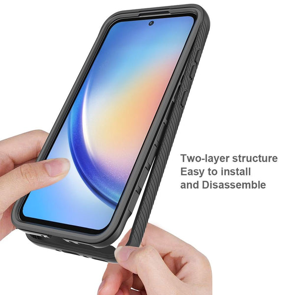For Samsung Galaxy A35 5G Starry Sky Solid Color Shockproof TPU Clear PC Phone Case(Dark Blue)