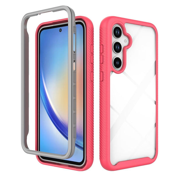 For Samsung Galaxy A35 5G Starry Sky Solid Color Shockproof TPU Clear PC Phone Case(Pink)