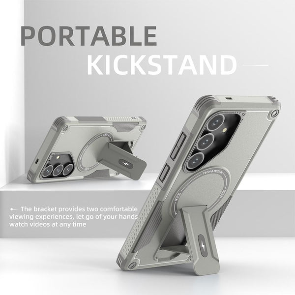 For Samsung Galaxy A35 Armor MagSafe Holder PC Hybrid TPU Phone Case(Grey)
