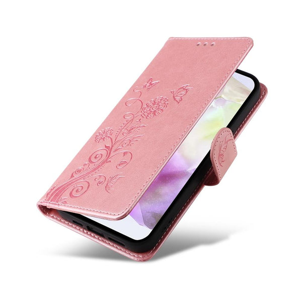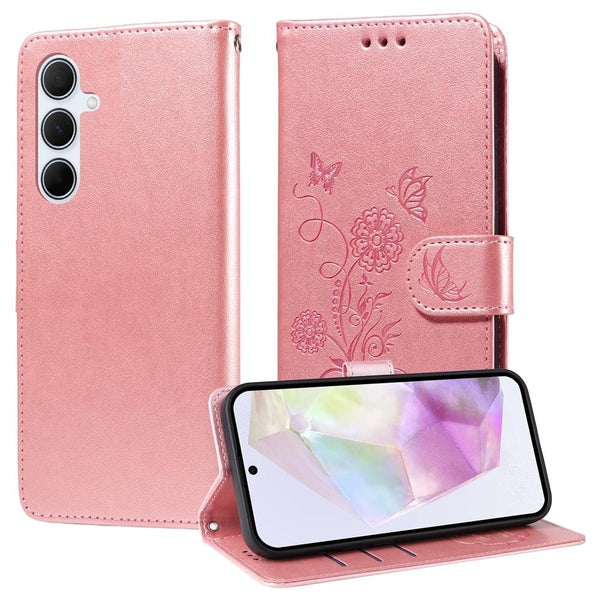 For Samsung Galaxy A36 5G / A56 5G Embossed Butterfly Flowers Leather Phone Case(Rose Gold)