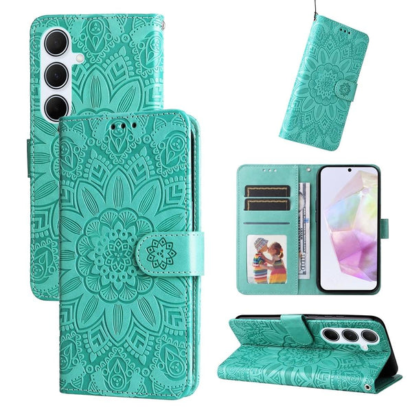 For Samsung Galaxy A36 5G / A56 5G Embossed Sunflower Leather Phone Case(Green)