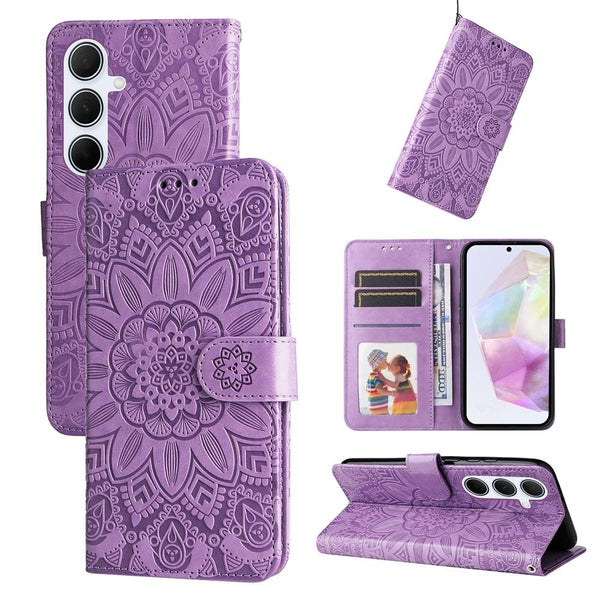 For Samsung Galaxy A36 5G / A56 5G Embossed Sunflower Leather Phone Case(Purple)