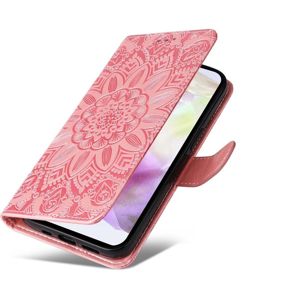 For Samsung Galaxy A36 5G / A56 5G Embossed Sunflower Leather Phone Case(Rose Gold)