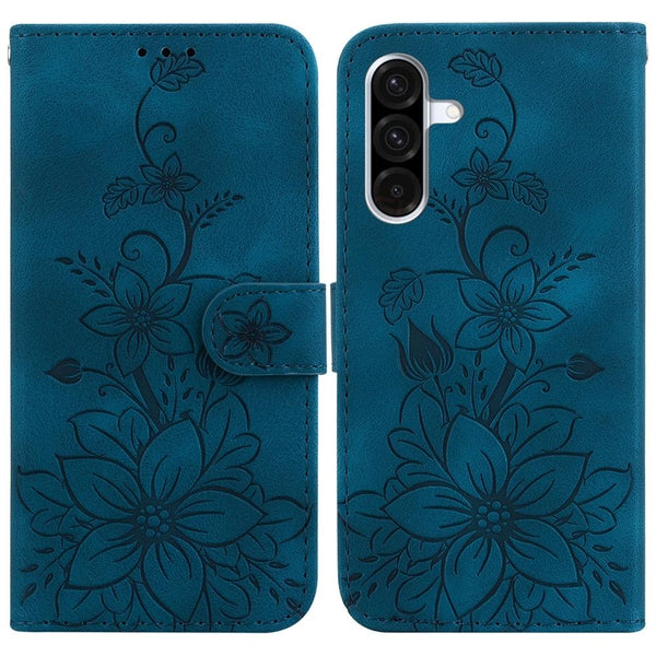 For Samsung Galaxy A36 5G / A56 5G Lily Embossed Leather Phone Case(Dark Blue)