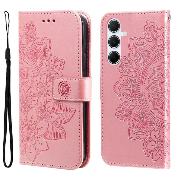 For Samsung Galaxy A36 5G / A56 5G Seven-petal Flowers Embossing Leather Phone Case(Rose Gold)