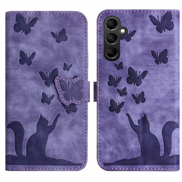 For Samsung Galaxy A36 5G Butterfly Cat Embossing Flip Leather Phone Case(Purple)
