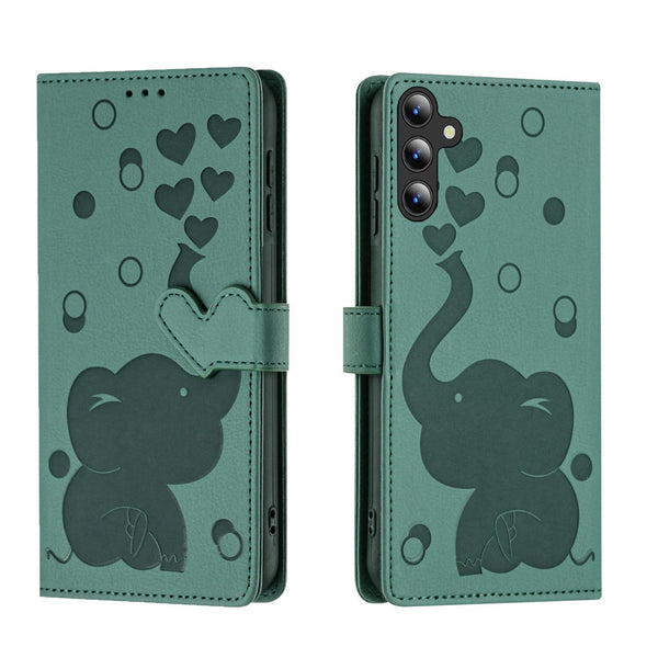 For Samsung Galaxy A36 5G Cartoon Elephant Embossed Leather Phone Case(Green)