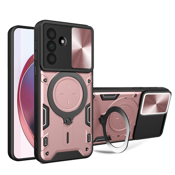For Samsung Galaxy A36 5G CD Texture Sliding Camshield Magnetic Holder Phone Case(Pink)