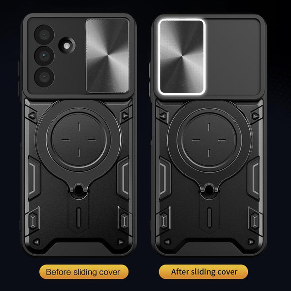 For Samsung Galaxy A36 5G CD Texture Sliding Camshield Magnetic Holder Phone Case(Purple)