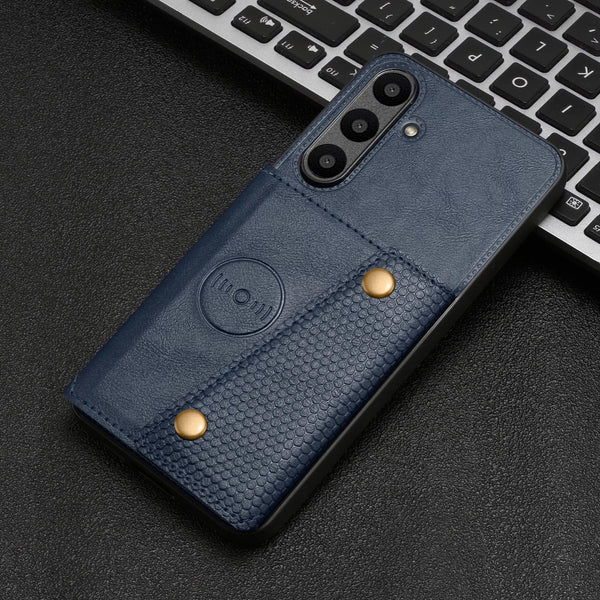 For Samsung Galaxy A36 5G Double Buckle Card Slots Magnetic Phone Case(Blue)