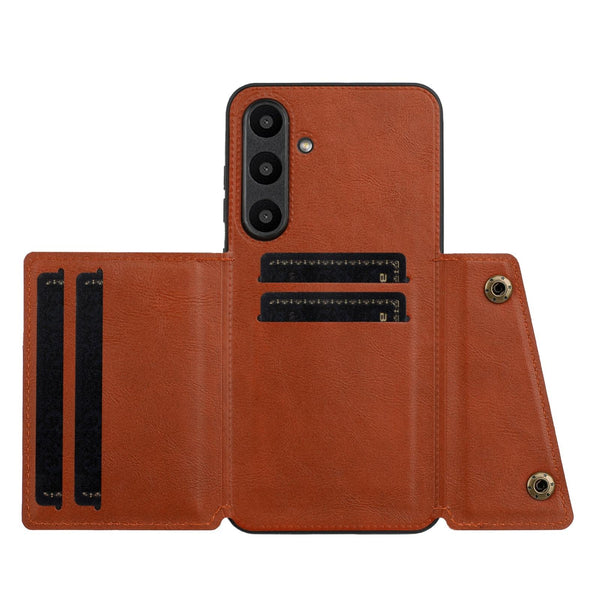 For Samsung Galaxy A36 5G Double Buckle Card Slots Magnetic Phone Case(Brown)