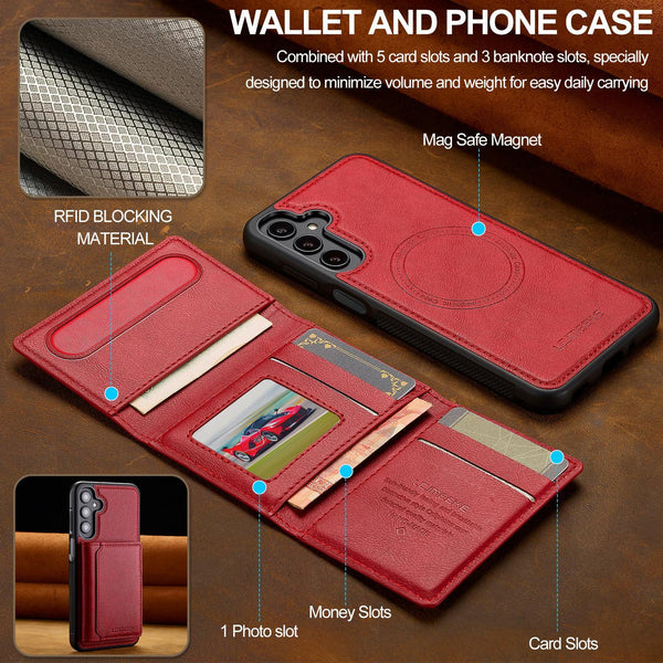 For Samsung Galaxy A36 5G LC.IMEEKE L5 Series Detachable RFID Card Bag Magsafe Phone Case(Red)