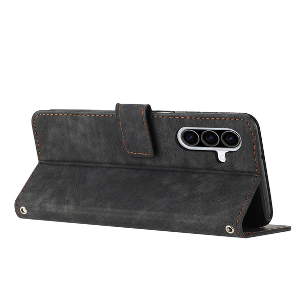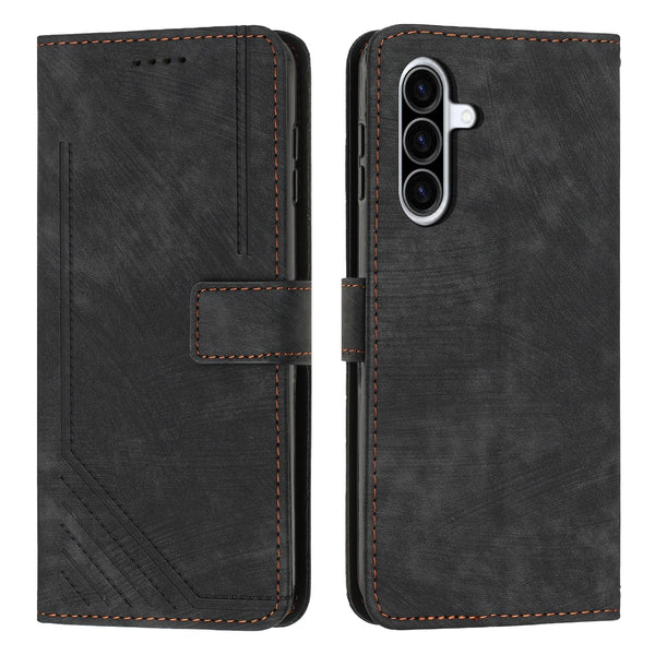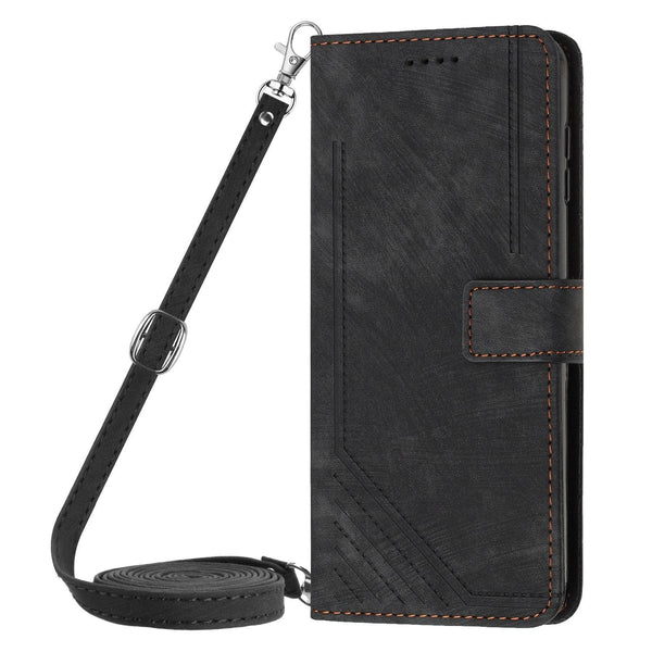 For Samsung Galaxy A36 5G Skin Feel Stripe Pattern Leather Phone Case with Long Lanyard(Black)