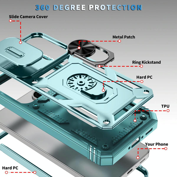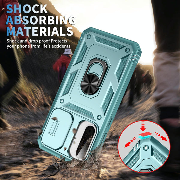 For Samsung Galaxy A36 5G Sliding Camshield TPU + PC Phone Case with Holder(Green)