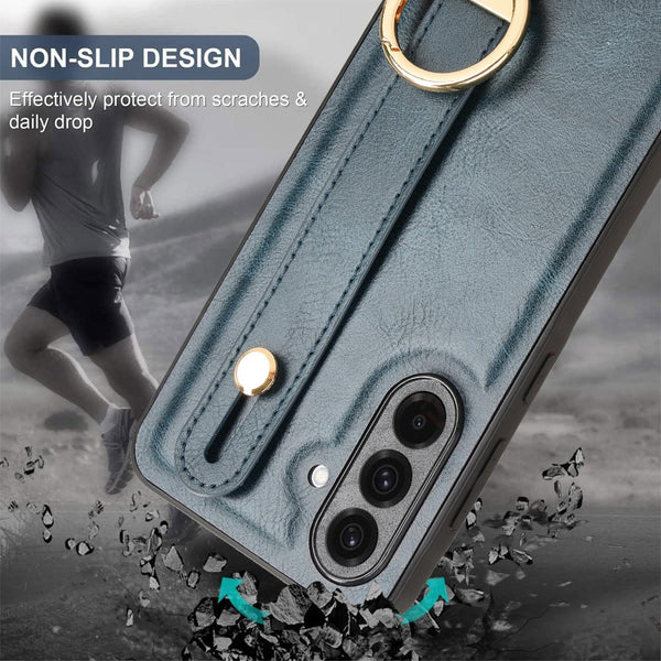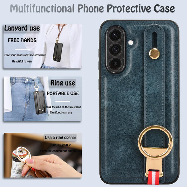 For Samsung Galaxy A36 5G Wristband Leather Back Phone Case(Blue)