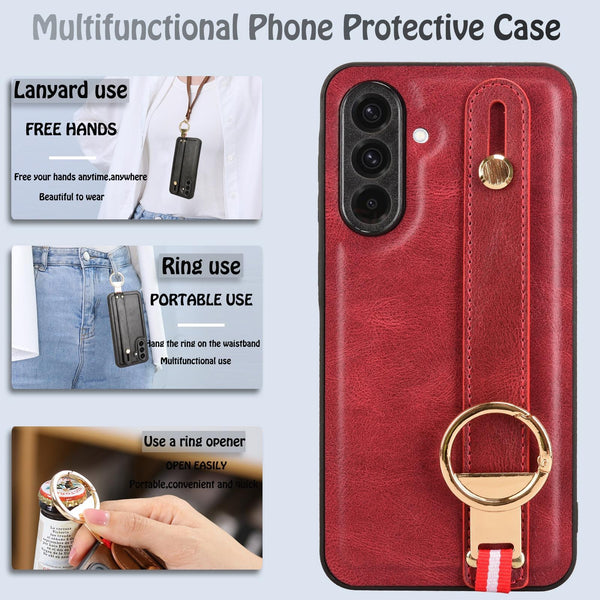 For Samsung Galaxy A36 5G Wristband Leather Back Phone Case(Red)