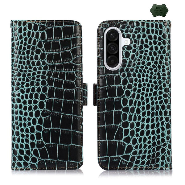 For Samsung Galaxy A36 Crocodile Top Layer Cowhide Leather Phone Case(Green)