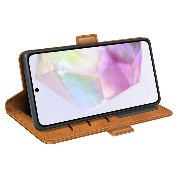 For Samsung Galaxy A36 Dual-side Magnetic Buckle Horizontal Flip Leather Phone Case(Yellow)