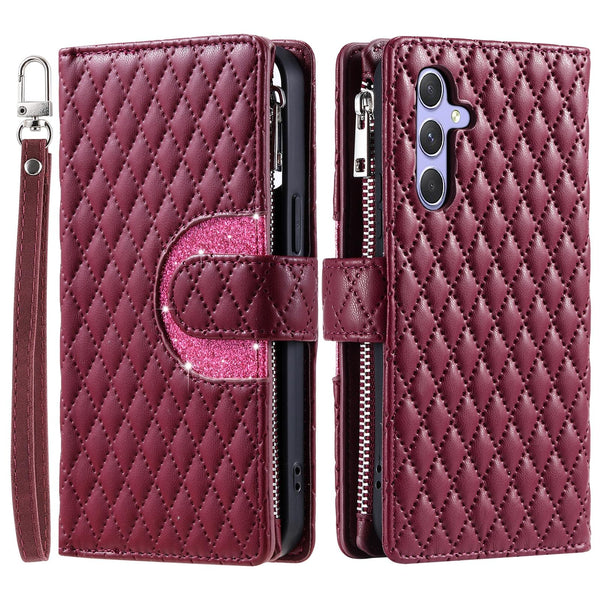 For Samsung Galaxy A36 Glitter Lattice Zipper Wallet Leather Phone Case(Wine Red)